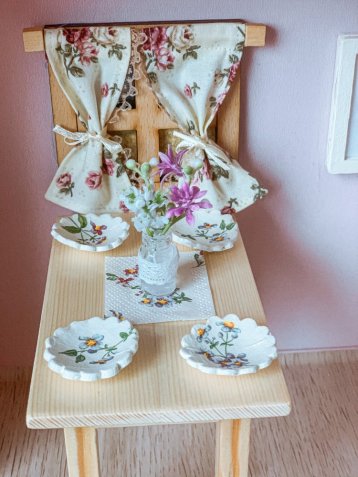 Berte prosím na vědomí, že se každý kus je originál z ruční výroby, proto se mohou drobné detaily nebo dekor mírně lišit od fotografie. Všechny miniatury do domečků, které jsou prodávané jako doplňky a dekorace, jsou určené k výbavě designového domečku, ale nejedná se o hračky. Vše ale vyrábíme z nezávadného materiálu v měřítku 1:12. Nevhodné pro děti do 3 let.
